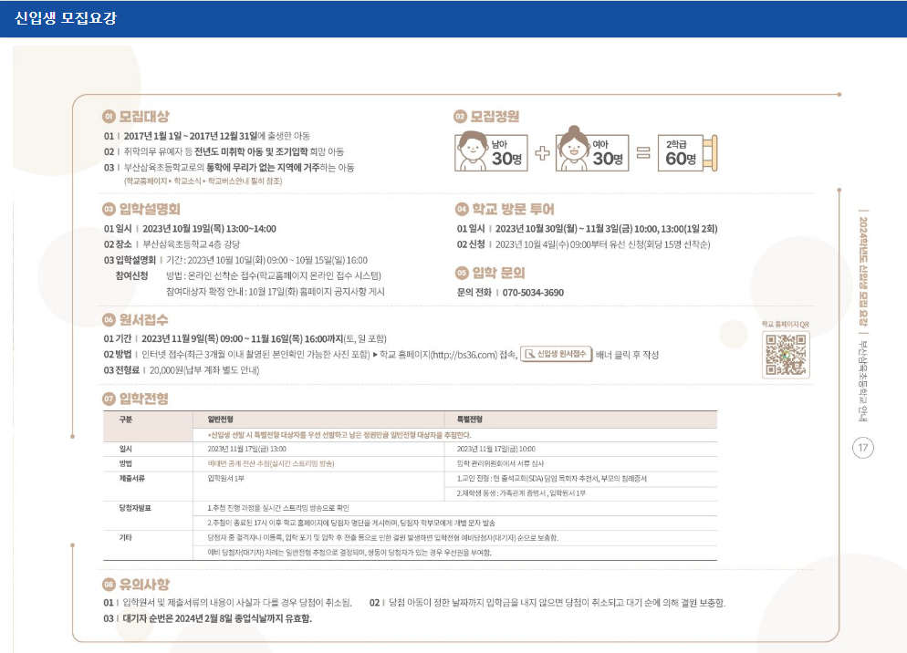 1) 입학원서 및 제출서류의 내용이 사실과 다를 경우 당첨이 취소됨.